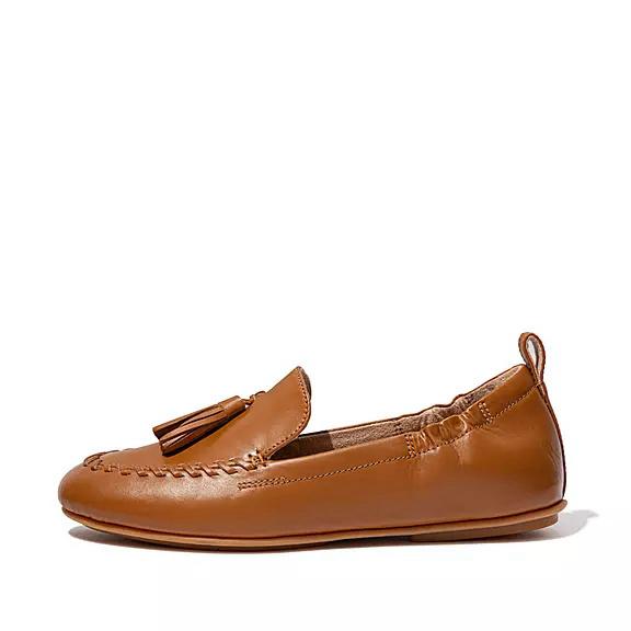 FitFlop Women's ALLEGRO Fold-Down Back Leather Ballet Flats - Beige Buff (VQKZI-5316)