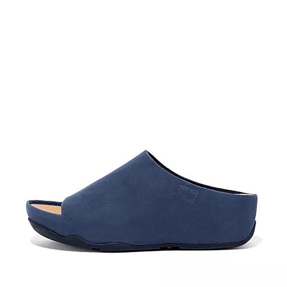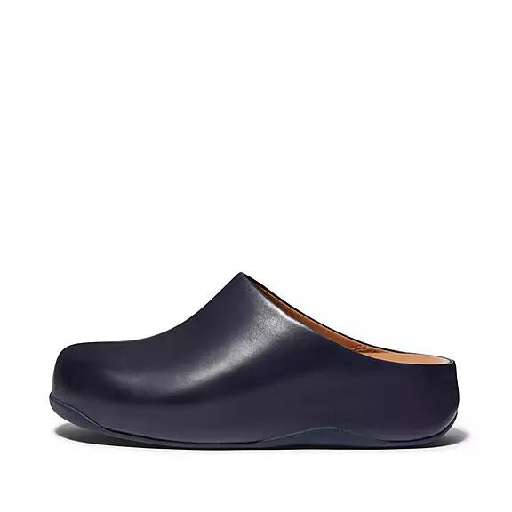 FitFlop Women's SHUV Two-Bar Leather Slides Slip On Sandals - Midnight Navy (OZXKU-4709)