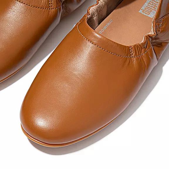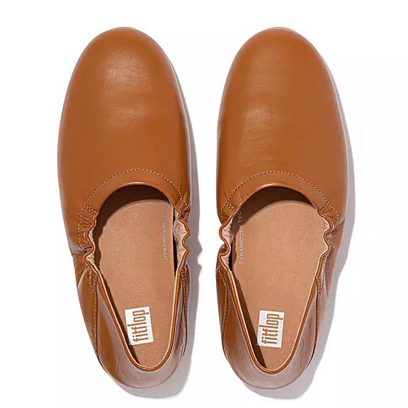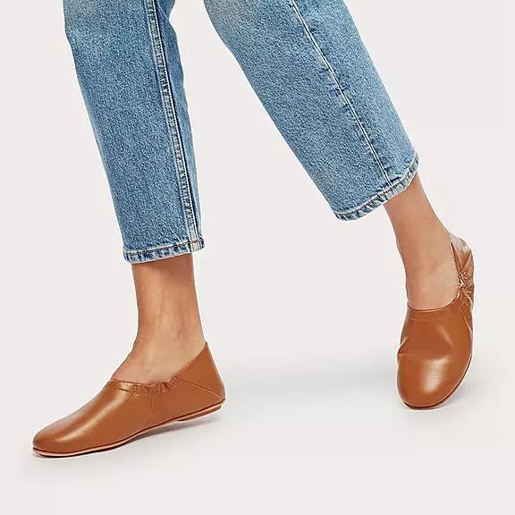 FitFlop Women's ALLEGRO Fold-Down Back Leather Ballet Flats - Light Brown (PSZEI-6389)