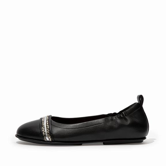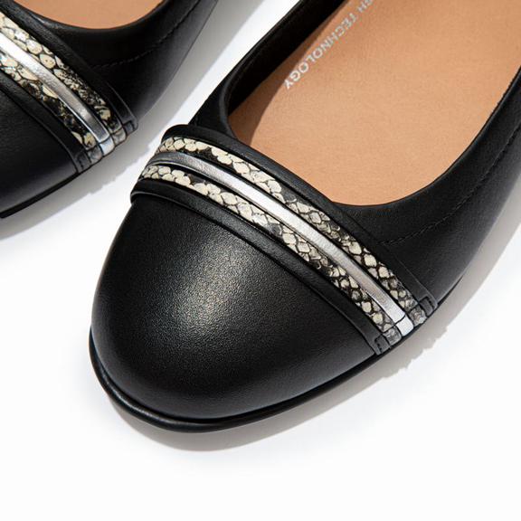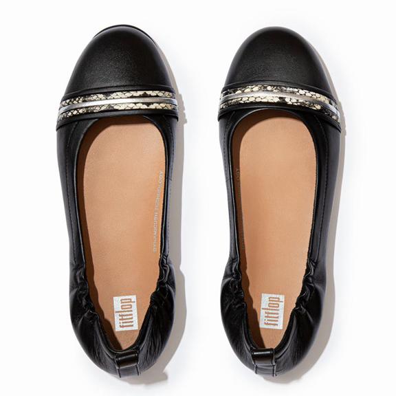 FitFlop Women's ALLEGRO Snake Trim Ballet Flats - Black (JPWHC-5871)