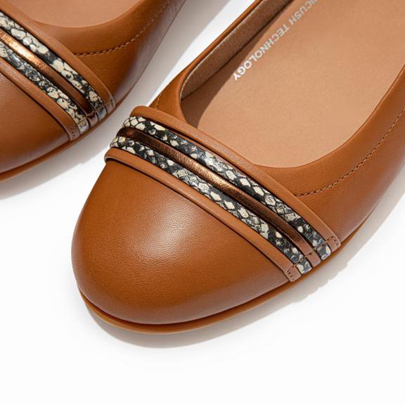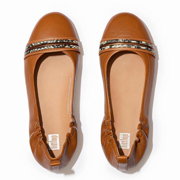 These ballet flats will have you in a whirl. Looking like classic ballet flats but feeling like sneakers – you’ll wonder just where we fit our comfort tech. Think genius design: sleek superlight midsoles, anatomically shaped to support your feet, with our high-rebound Dynamicush™ cushioning hidden in the forefoot. Here in soft leather, with fine faux-leather bands looped across the front. An elasticated top line gives a foot-hugging fit.