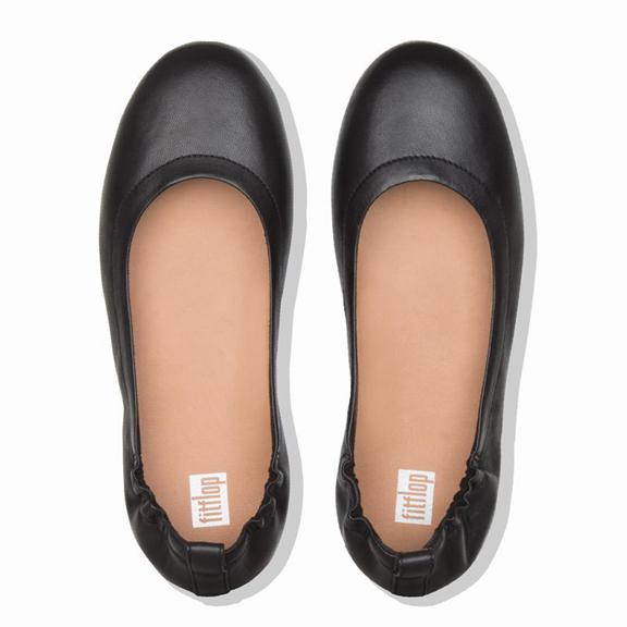 FitFlop Women's ALLEGRO Soft Leather Ballet Flats - Black (LBYOA-1582)