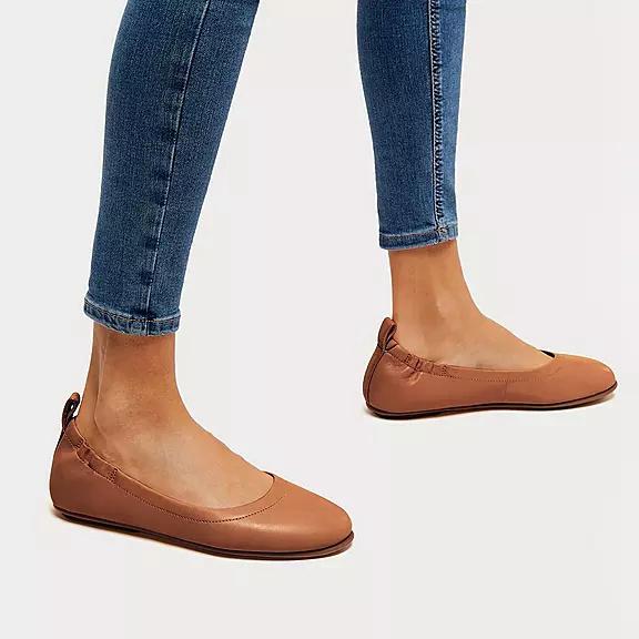 FitFlop Women's ALLEGRO Soft Leather Ballet Flats - Light Brown (SFOTH-1087)