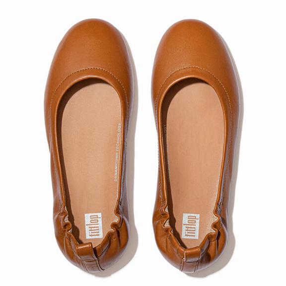 FitFlop Women's ALLEGRO Soft Leather Ballet Flats - Light Brown (UFEVT-0452)
