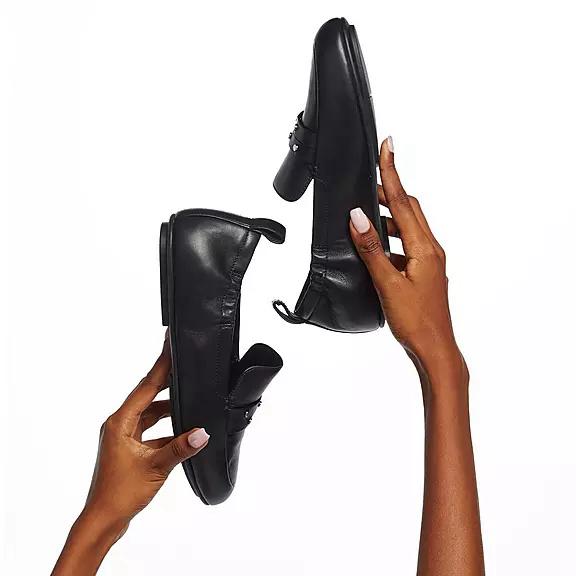 These soft little loafers will have you sighing with pleasure. Sophisticated on the outside – here in luxe butter-soft nappa leather, with flat shiny metal studs on straps across the front – they're sneaker-comfortable inside. Flexible, featherlight, with anatomically contoured footbeds that give natural support, and our high-rebound Dynamicush™ cushioning cleverly hidden in the forefoot. While an elasticated top line adjusts for a foot-hugging fit. Equally awesome for work or play.