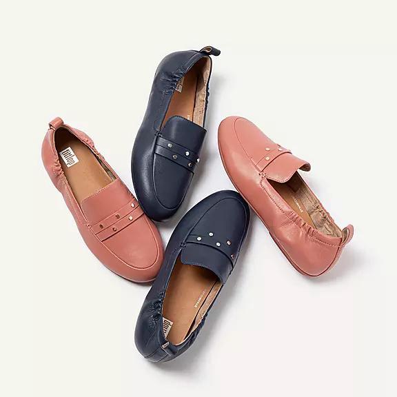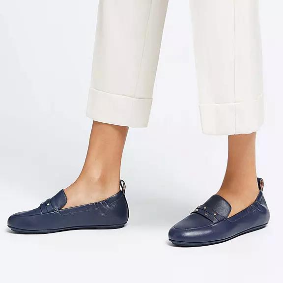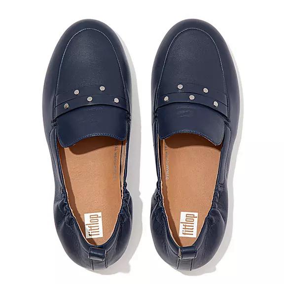 FitFlop Women's ALLEGRO Studded Leather Loafers - Midnight Navy (WALRX-7509)