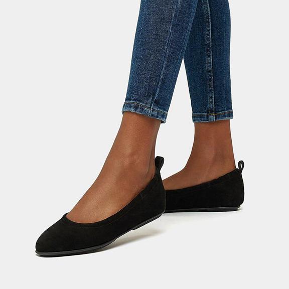 FitFlop Women's ALLEGRO Suede Ballet Flats - Black (GQFYP-1097)
