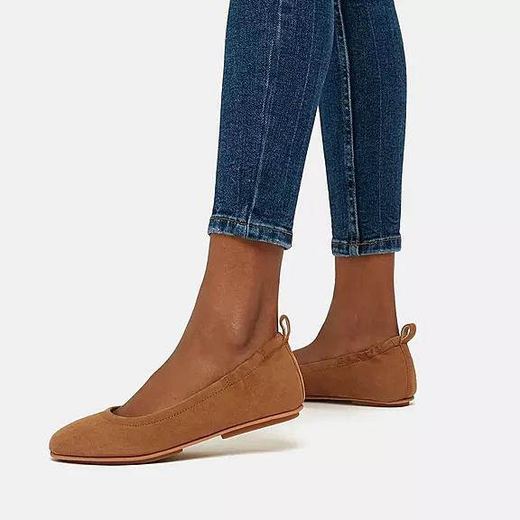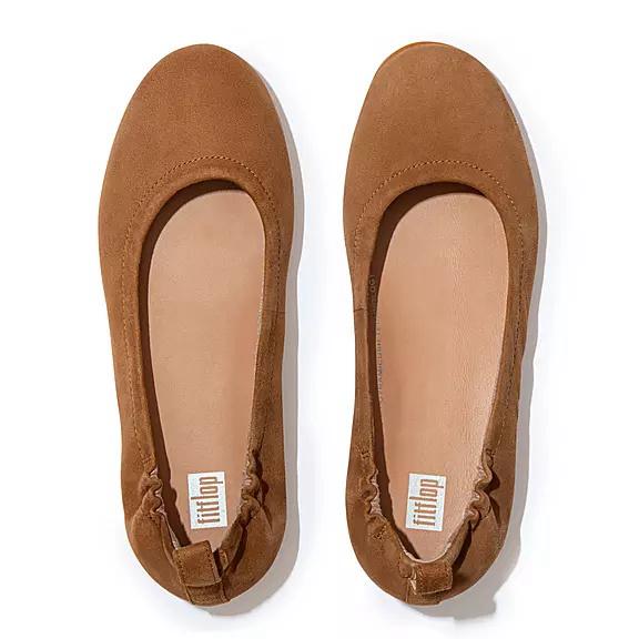 FitFlop Women's ALLEGRO Suede Ballet Flats - Light Brown (DXNBF-1432)
