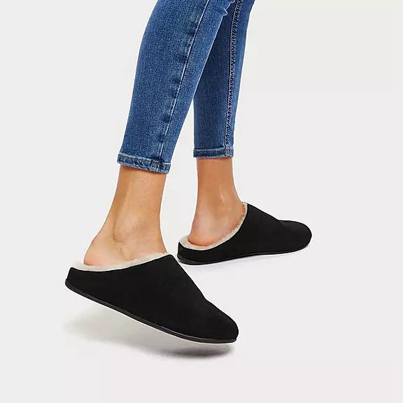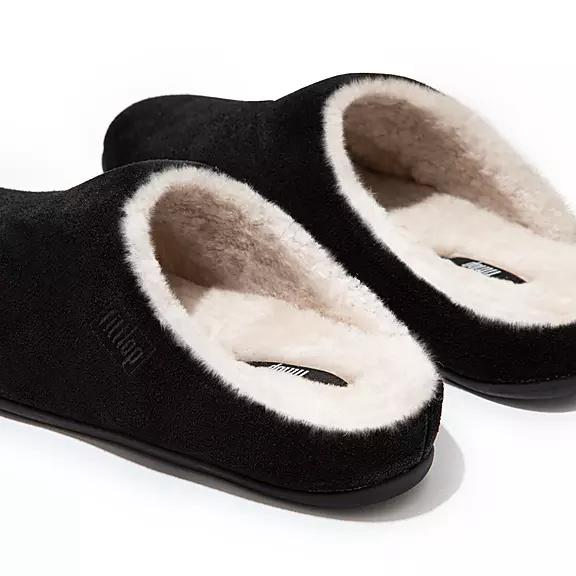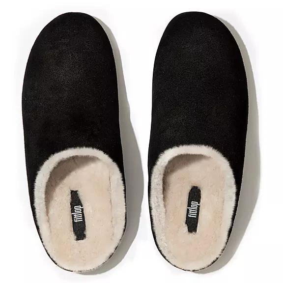 FitFlop Women's CHRISSIE Shearling Suede Slippers - Black (GHCVI-1823)