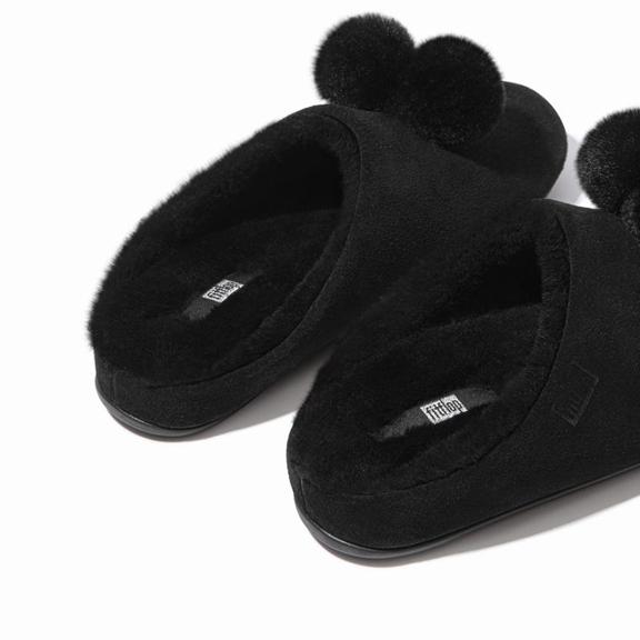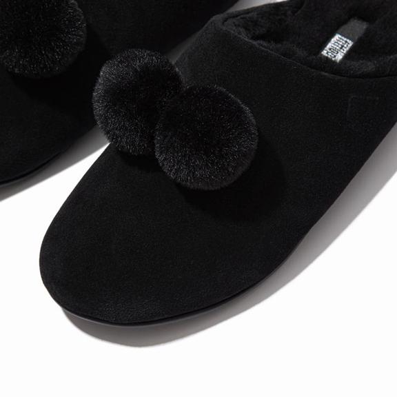 FitFlop Women's CHRISSIE Suede Pom Pom Slippers - Black (NDFWQ-1264)