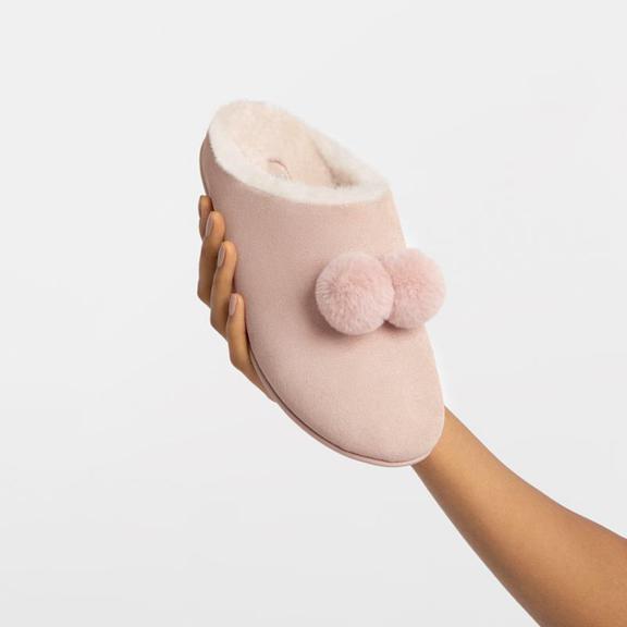 Modern, minimal, majorly light and comfy – these addictive little slippers were made for lounging in style. Here in rich suede with fluffy faux-fur pom poms, this version features a cosy, ultra-soft shearling lining, single-piece, softly padded uppers and our ultra-sleek, featherlight, ergonomically shaped iQushion™ midsoles. With rubber outsoles so you can pop outside (though wearing these you may never want to leave the house). Scotchgard™ protected.