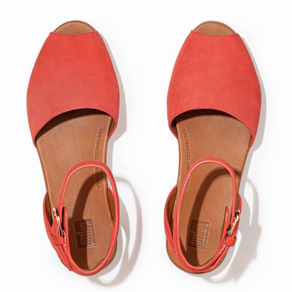 Who says you have to be pedi-ready to wear a summer shoe? This chic peep-toe version of our popular Cova sandals combines generous coverage and cool elegance. With an adjustable shiny-buckle back strap and featuring our sleek, dual-layer DuocomFF™ midsoles for superb all-day ergonomic comfort and cushioning. Smart and sophisticated these are perfect sandals for work. Here in soft kid suede.