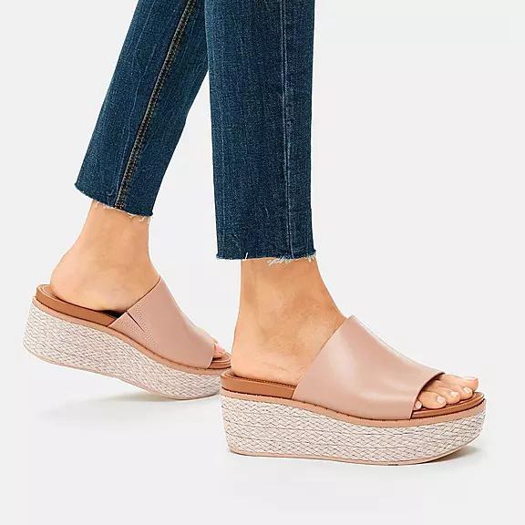 FitFlop Women's ELOISE Espadrille Leather Wedge Slides Slip On Sandals - Beige Buff (LFEUS-0526)
