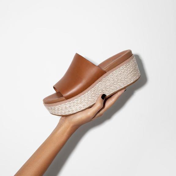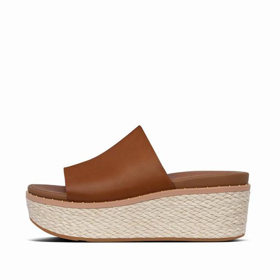 FitFlop Women's ELOISE Leather Espadrille Wedge Sandals - Light Brown (ZVOWN-1726)