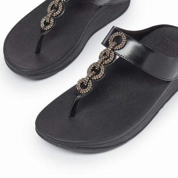 Comfortable can be seriously covetable. Case in point: the Fino, our slinky, foot-flattering toe-thongs. On our ultra-cushioned Microwobbleboard™ midsoles for unbeatable all-day comfort. This season, in glossy faux-leather, adorned with an elegant chain glittering with diamanté micro-'crystals'. Perfect for dressing up a daytime look or for evening glamour.