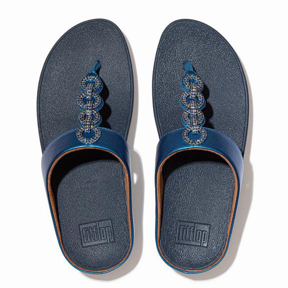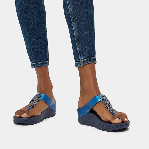 Home ::  Sandals ::  Toe Post Sandals ::  FitFlop Women's FINO Faux Leather Toe Post Sandals - Blue (JZTKM-3259)