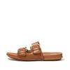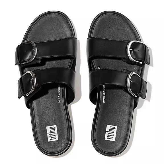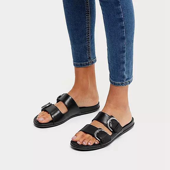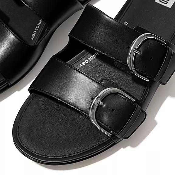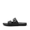 FitFlop Women's SHUV Two-Bar Leather Slides Slip On Sandals - Midnight Navy (OZXKU-4709)