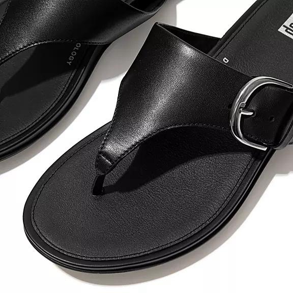 FitFlop Women's GRACIE Buckle Leather Toe Post Sandals - Black (JHLFT-9507)