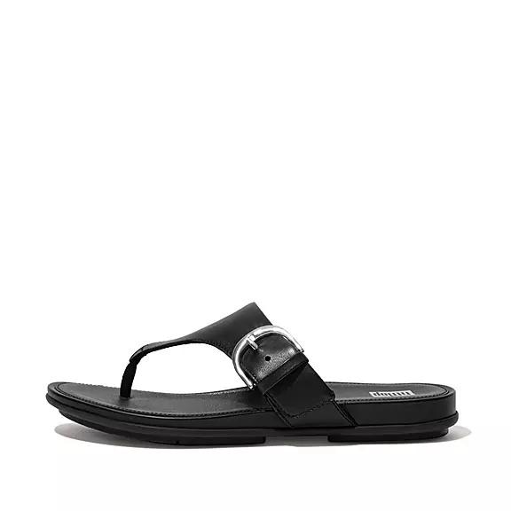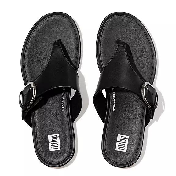 Home ::  Sandals ::  Toe Post Sandals ::  FitFlop Women's GRACIE Buckle Leather Toe Post Sandals - Black (JHLFT-9507)