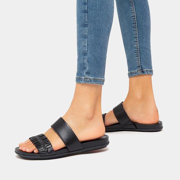 Slides that take 'sleek and simple' to the extreme. They look like the kind of ultra-chic flats that can be hard work to walk in...but slip these on and you'll swear you're in your comfiest shoes. Thanks to anatomically shaped, supportive footbeds and our high-rebound Dynamicush™ cushioning (its first appearance in a sandal) hidden in those svelte soles. Here with a faux-leather top strap and an all-leather lower strap 'wrapped' in a leather weave. Elegant with artisanal cool.