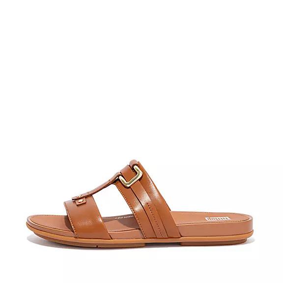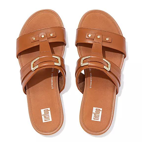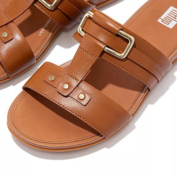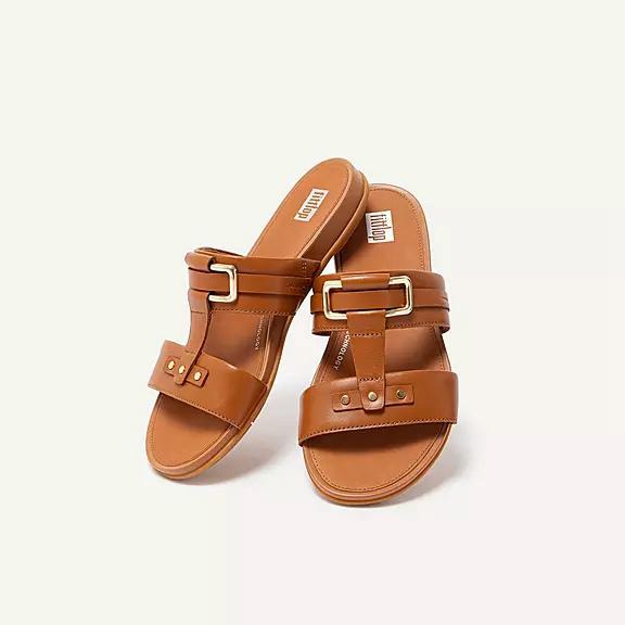 Slides that take 'sleek' to the extreme. They look like the kind of ultra-chic flats that can be hard work to walk in...but slip these on and you'll swear you're in your comfiest shoes. Thanks to anatomically contoured footbeds that give natural support and our high-rebound Dynamicush™ cushioning (its first appearance in a sandal) hidden in those light supersvelte soles. Here in soft, high quality leather, with an elegant H-bar design – featuring overlay strap detailing and a shiny metallic buckle and flat studs.
