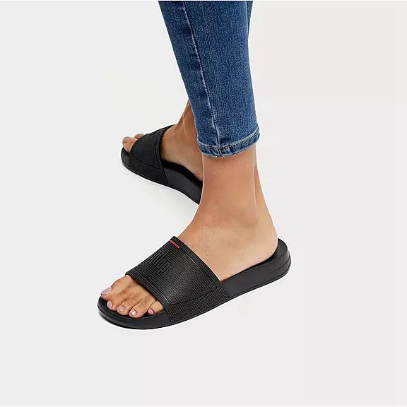 FitFlop Women's IQUSHION Water-Resistant Crystal Slides Slip On Sandals - Black (ZCKLP-9201)