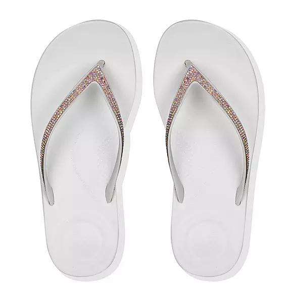 FitFlop Women's IQUSHION Sparkle Ergonomic Flip Flops - White (ONIUW-6521)