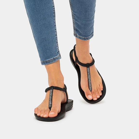 A slinky back-strap version of our best-selling surfer-girl flip flops. Featuring the same iQushion™ midsoles – featherlight, ergonomically shaped air-foam cushioning for amazing walk-all-day comfort. And an adjustable back strap so they stay on, whether you're cooling your toes in the sea or dashing round town. Here with a strip of sparkling micro-crystals on the front strap, these sparkly sandals are waterproof and slip-resistant.