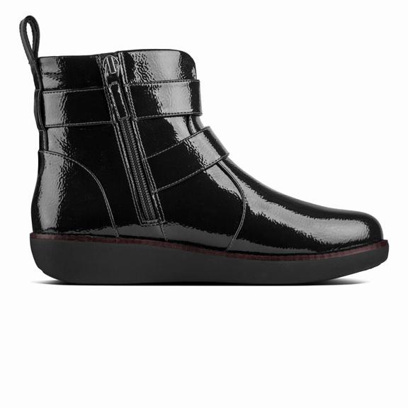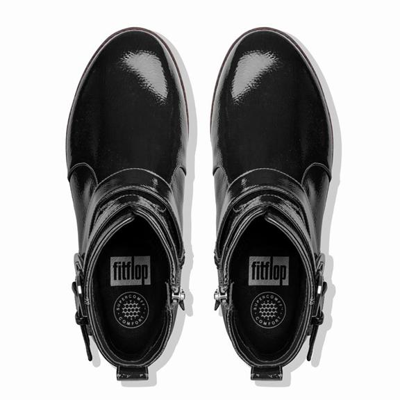 Buckle up for this season's must-have ankle boots. Crafted in glossy crinkle patent, and sporting two shiny buckles, these feature an inside zip for easy on and off and our ergonomic SupercomFF midsoles for incredible all-day comfort. Show yours off with cropped trousers, skinnies or a midi skirt.