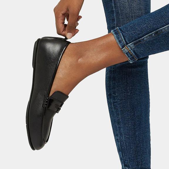 Want to look more pulled together? Just slip on this preppy-perfect version of our Lena loafers. Supersleek. Featherlight. Timelessly stylish – in butter-soft leather, with a penny loafer strap and moccasin piping in patent faux-leather. Yet they deliver major comfort thanks to their supportive anatomically shaped footbed and our 'bouncy' high-rebound Dynamicush™ cushioning hidden in a classic 'flat sole'. Dress them up or down, a class act.