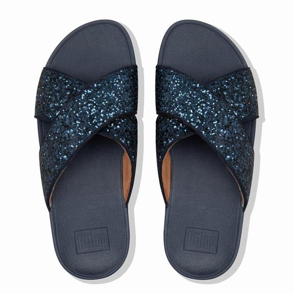FitFlop Women's LULU Glitter Sparkly Slides - Navy (AKYHD-0698)