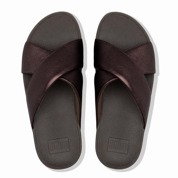 FitFlop Women's LULU Leather Criss Cross Slides - Chocolate Metal (TXWYC-4370)