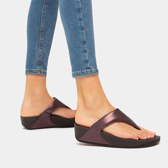 FitFlop Women's LULU Leather Toe Post Sandals - Chocolate Metal (PZOVT-6234)