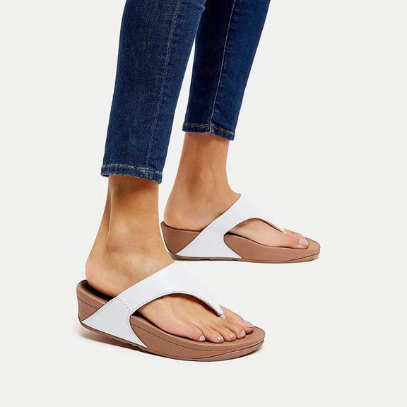 FitFlop Women's LULU Leather Toe Post Sandals - White (NDFQT-8276)