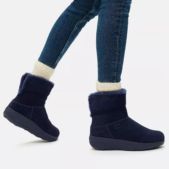 FitFlop Women's MUKLUK SHORTY Shearling-Lined Suede Ankle Boots - Midnight Navy (GXIYR-8134)