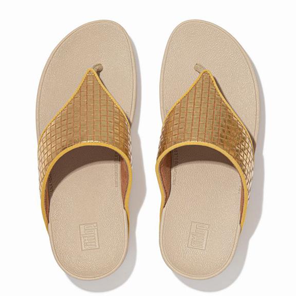 FitFlop Women's OLIVE Leather Toe Post Sandals - Gold/Multicolor (KOWJB-2867)