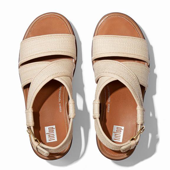 FitFlop Women's PILAR Faux Raffia Polyester Platform Sandals - Orange/White (FKWXE-9824)