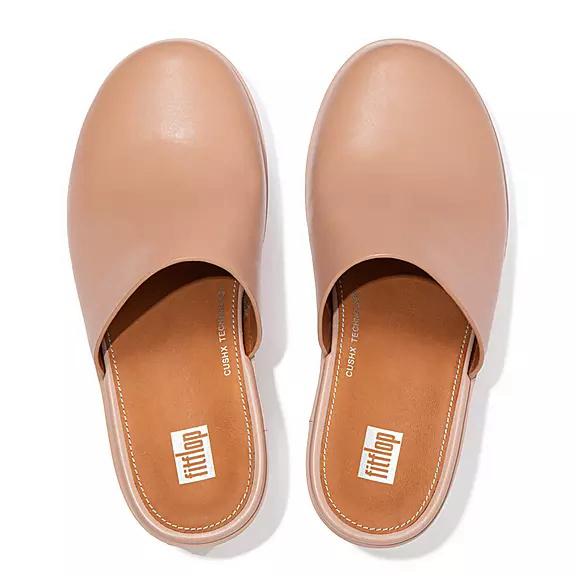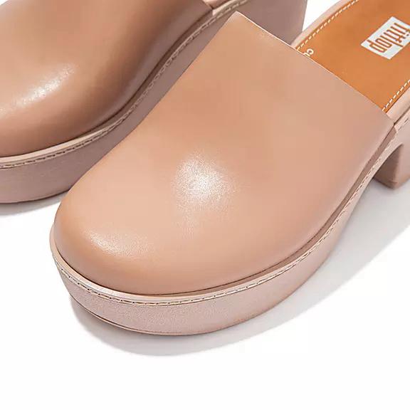 FitFlop Women's PILAR Leather Mule Platform Sandals - Beige Buff (JWKEH-2359)