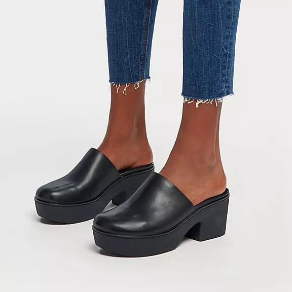 FitFlop Women's PILAR Leather Mule Platform Sandals - Black (OPNCY-6428)