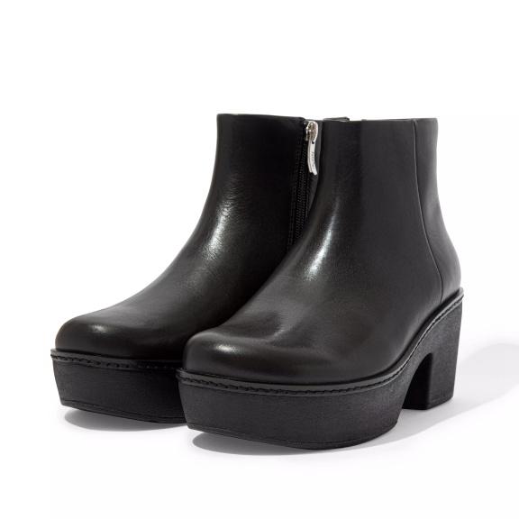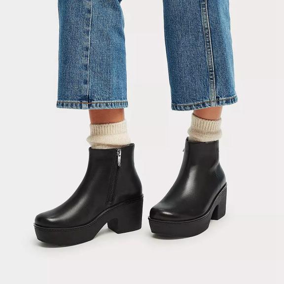 FitFlop Women's PILAR Leather Platform Ankle Boots - Black (XCZJN-2485)