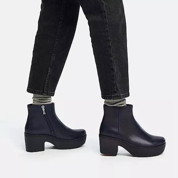 FitFlop Women's PILAR Leather Platform Ankle Boots - Midnight Navy (FGSBP-7985)