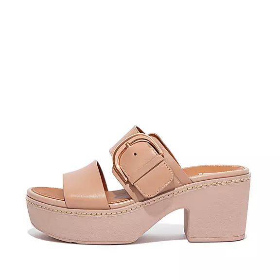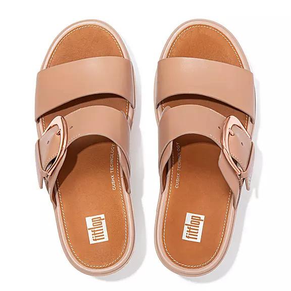 FitFlop Women's GRACIE Buckle Leather Slides Slip On Sandals - Light Brown (ZENVU-0297)