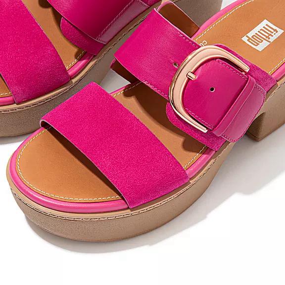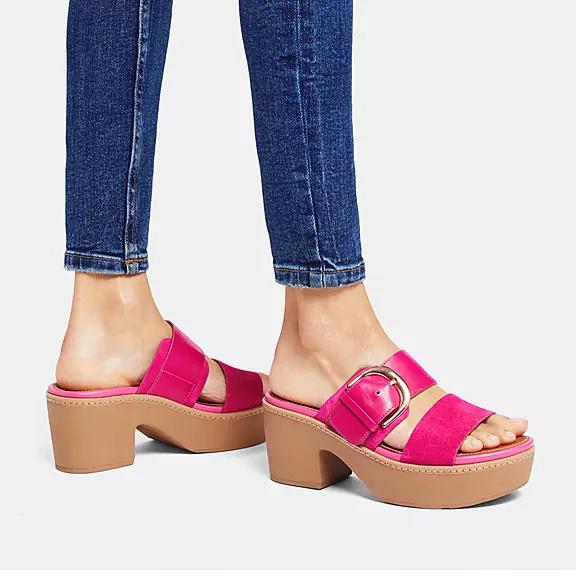 CA$174 CA$130FitFlop Women's GRACIE Buckle Leather Slides Slip On Sandals - Light Brown (ZENVU-0297)