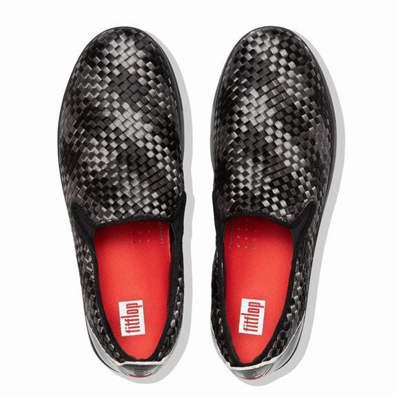 FitFlop Women's RALLY Checkered Woven Slip On Sneakers - Black (POJHT-1623)