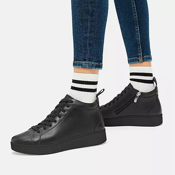 FitFlop Women's RALLY Leather High-Top Sneakers - Black (NWGRD-1405)
