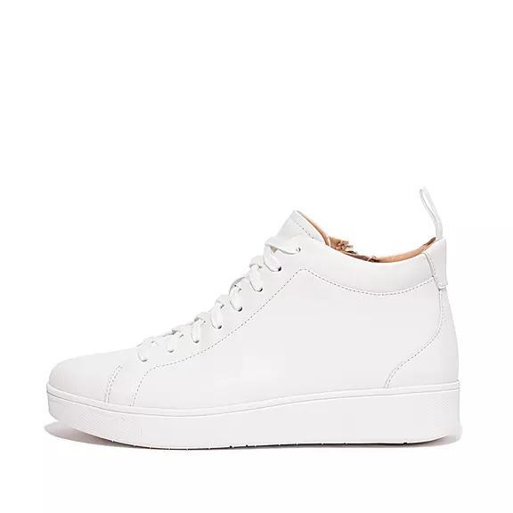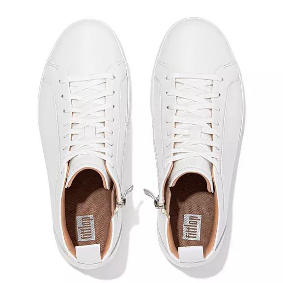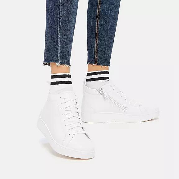 FitFlop Women's RALLY Leather High-Top Sneakers - White (GEVJY-1659)