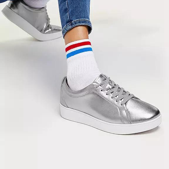 FitFlop Women's RALLY Leather Sneakers - Silver (FSMHW-1452)