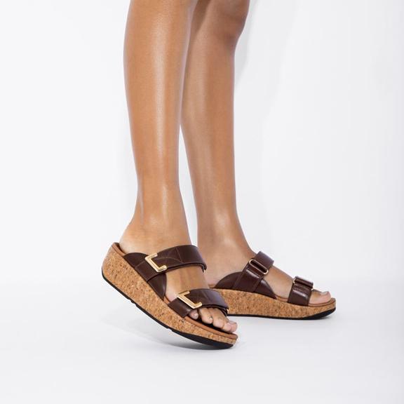 FitFlop Women's REMI Leather Slides - Chocolate/Brown (KXMPT-7250)