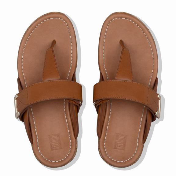 FitFlop Women's REMI Leather Toe Post Sandals - Light Brown (TRVOC-0532)