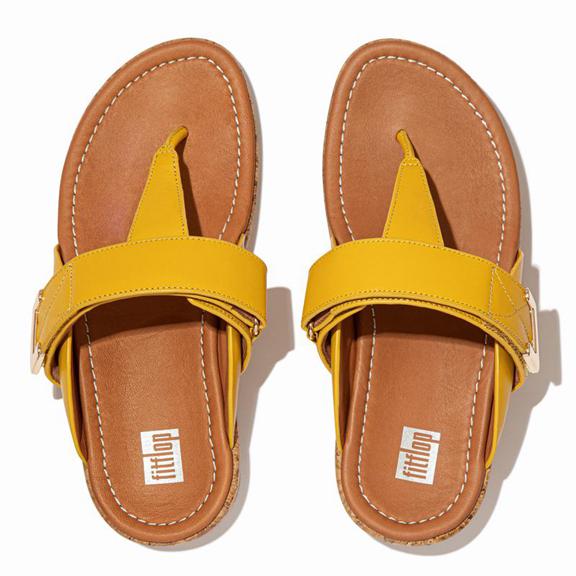 FitFlop Women's REMI Leather Toe Post Sandals - Orange/Yellow (IQSHO-8713)